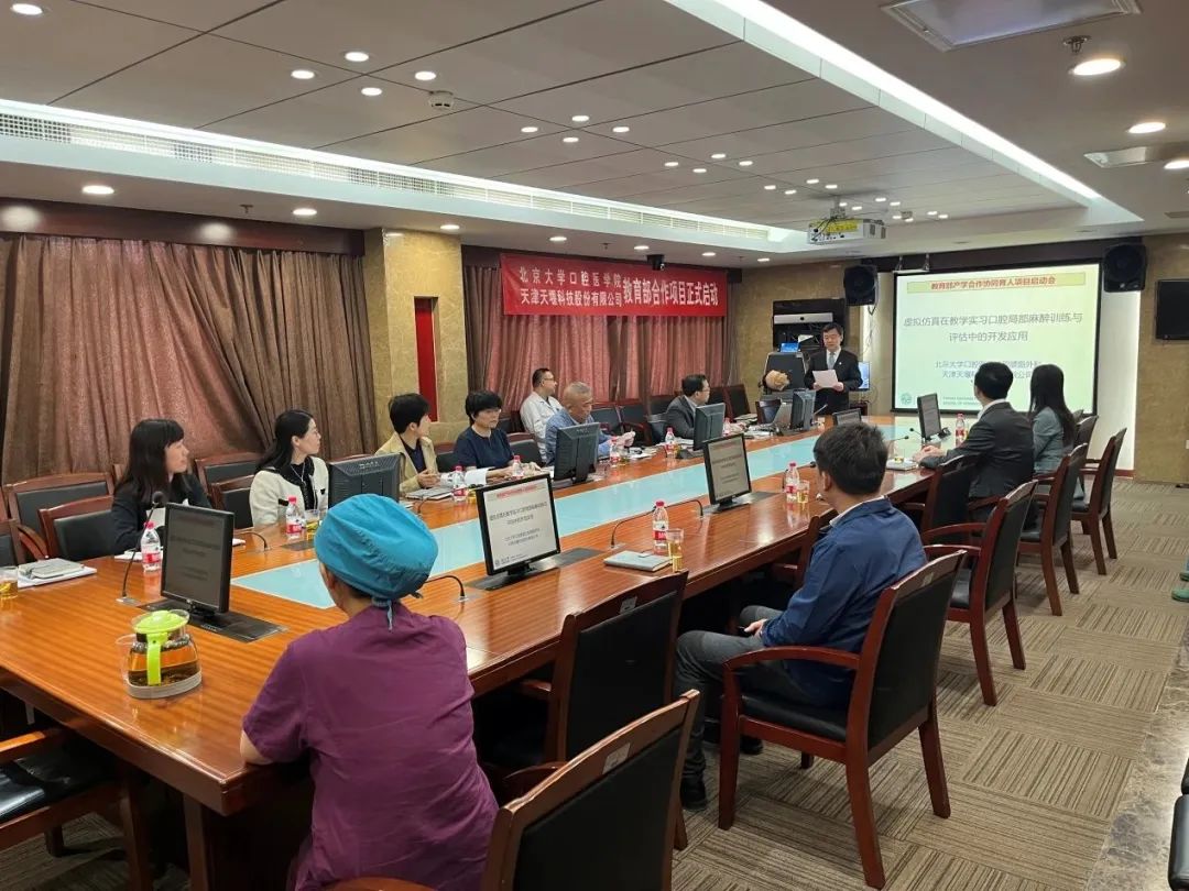 2023年4月24日,在这个春光明媚的日子里,北京大学口腔医院(北大口腔)与乐鱼网页版(天堰科技)召开“虚拟仿真在教学实习口腔局部麻醉训练与评估中的开发应用”项目启动会。北大口腔副院长李铁军、中华口腔医学会副秘书长刘宏伟、北大口腔教育处长董美丽、虚拟仿真教研室主任侯建霞、口腔颌面外科副主任贺洋、天堰科技总经理刘雁飞、天堰科技口腔事业部总经理景颖等人出席,在项目总负责人崔念晖主任主持下,双方展开了热烈而有成效的会晤,确定该项目正式启动。